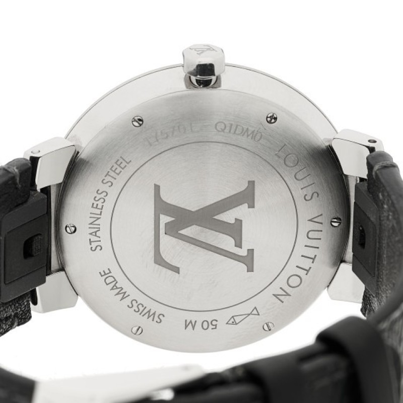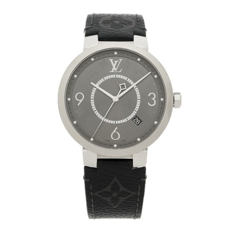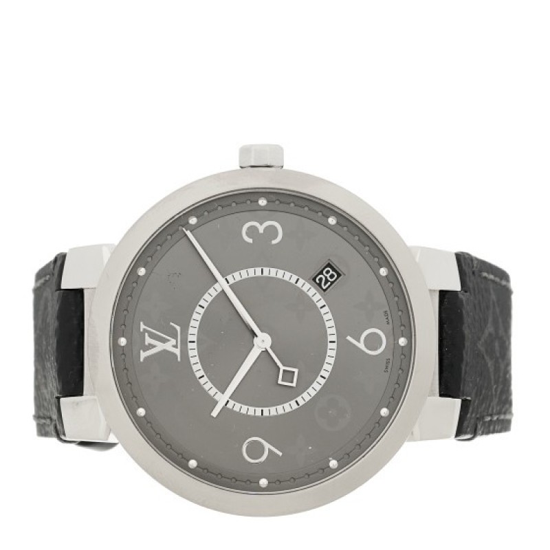 Louis Vuitton Stainless Steel Monogram Eclipse 39mm Tambour Slim Quartz Watch $835 |