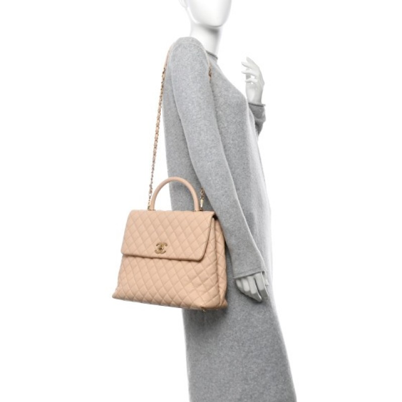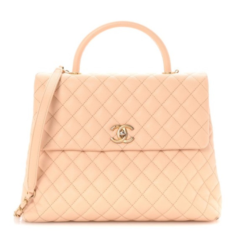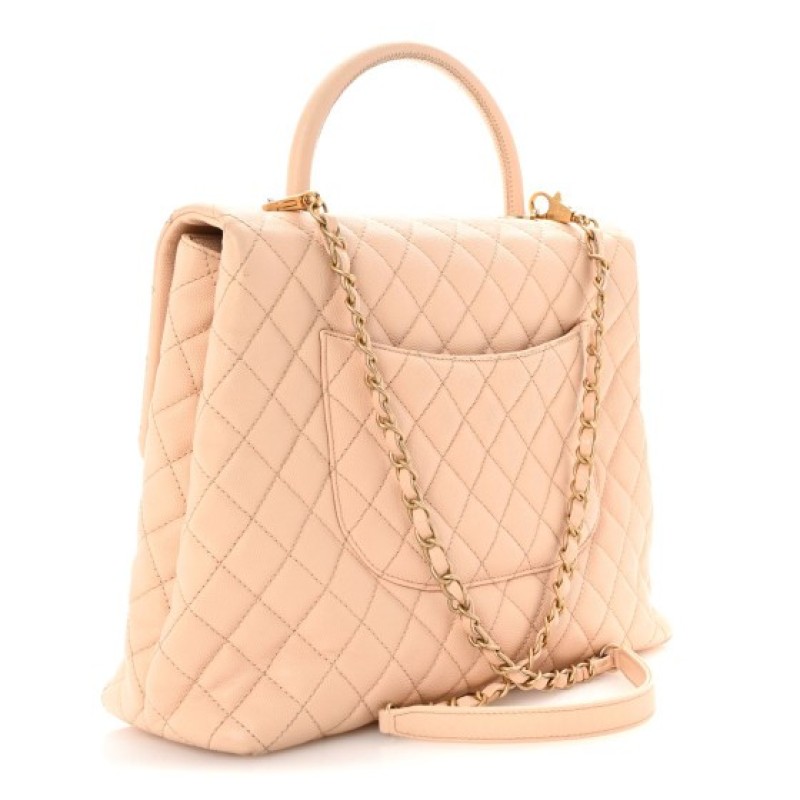 Chanel Caviar Quilted Large Coco Handle Flap Beige