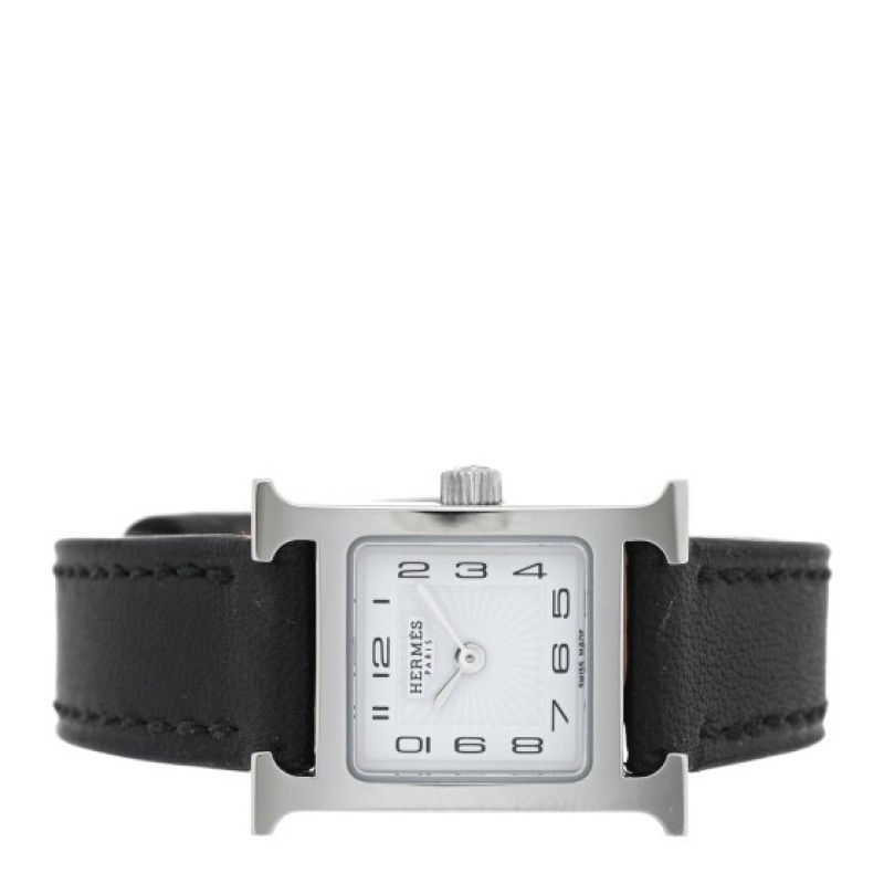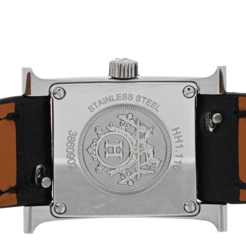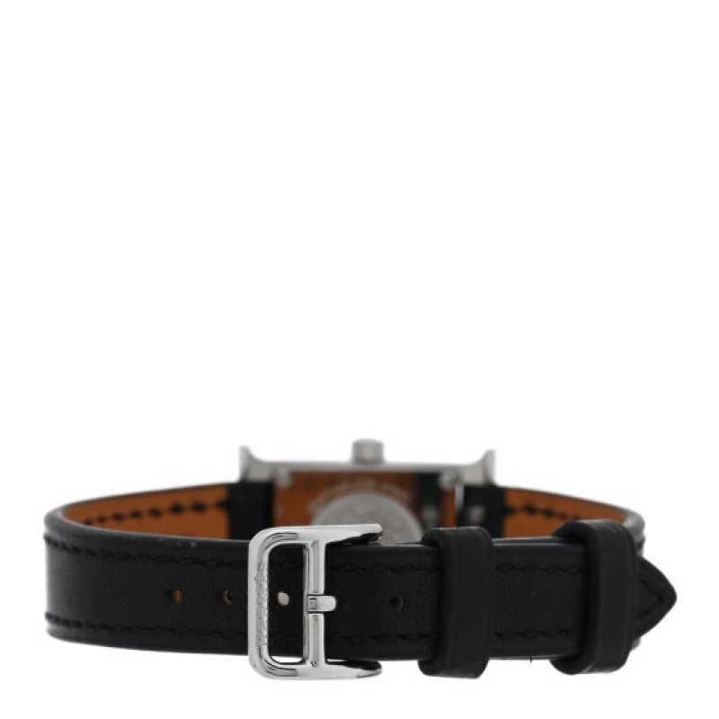 Hermes Stainless Steel Swift 17.2mm Heure H Hour Watch Noir
