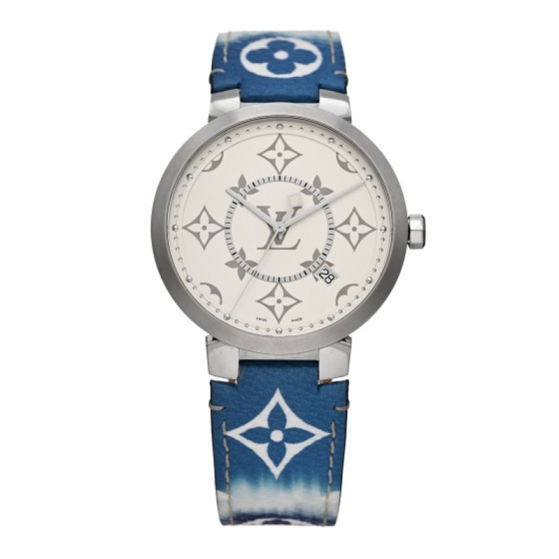 Louis Vuitton Stainless Steel Monogram 39mm Tambour Slim Quartz Watch Ombre Blue $1,495 |