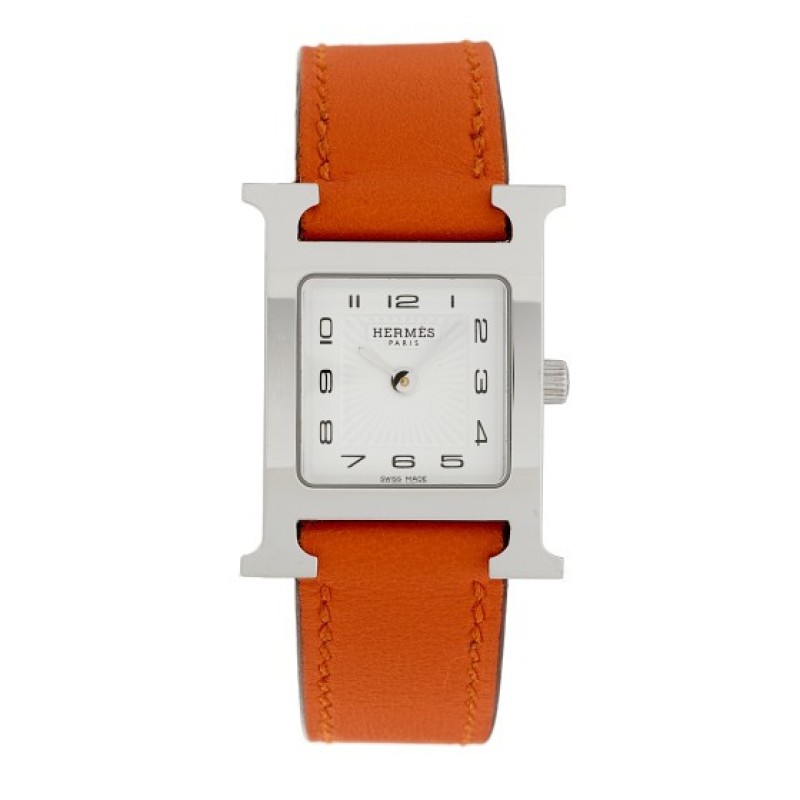 Hermes Stainless Steel Swift 21mm Heure H Hour Quartz Watch Orange