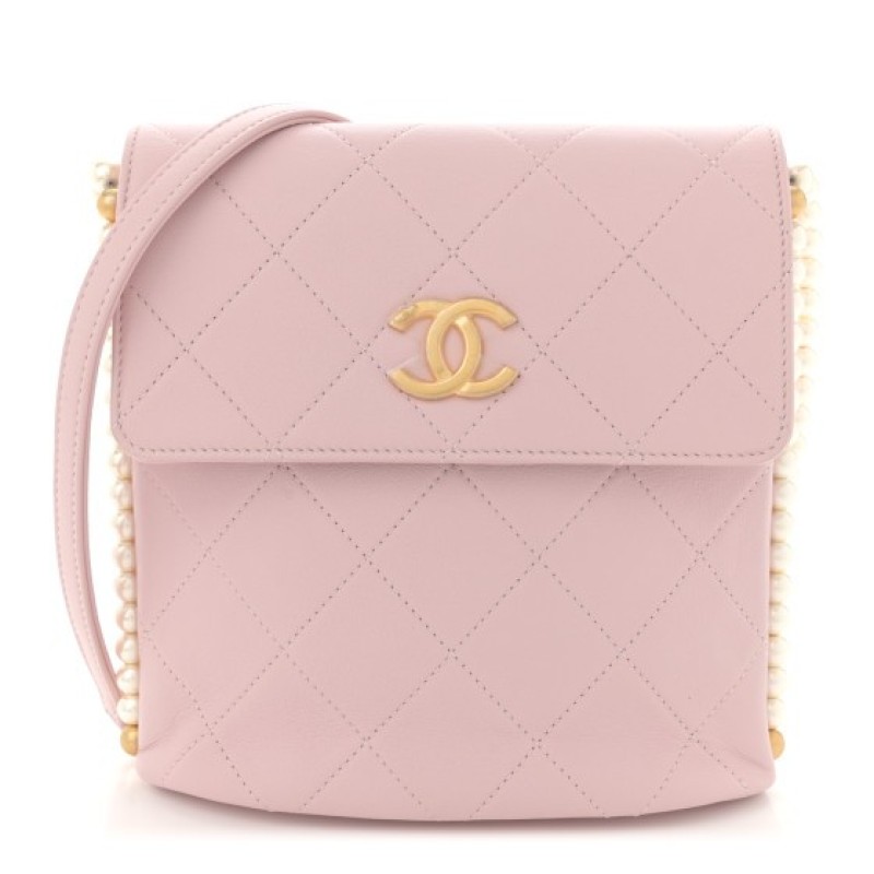 Chanel Calfskin Quilted Pearl Small About Pearls Hobo Bag Light Pink
