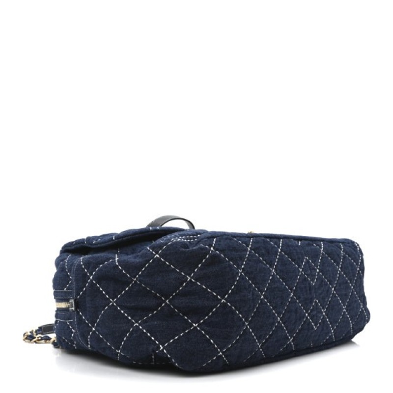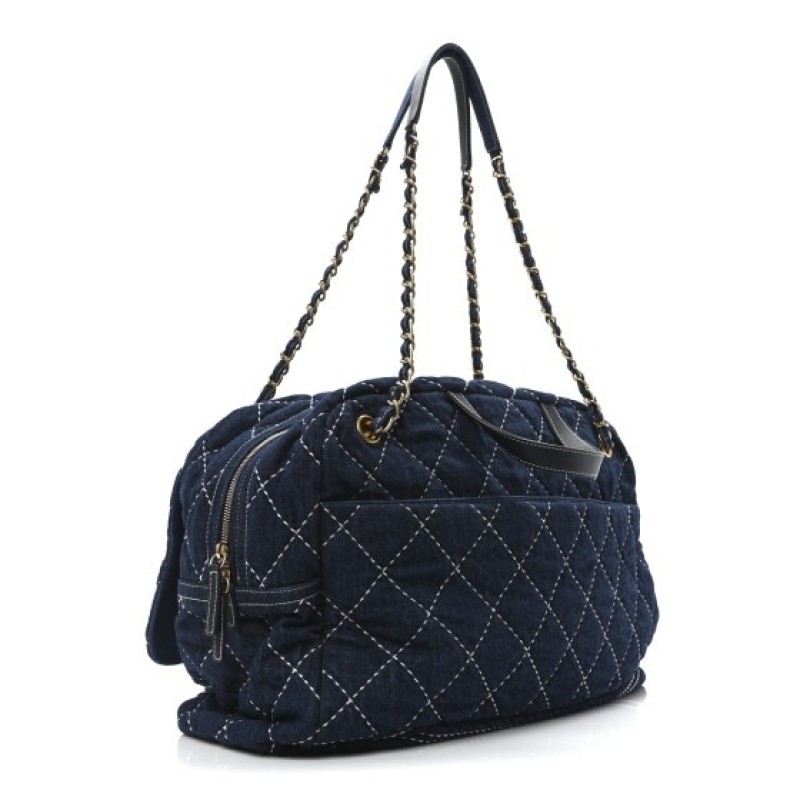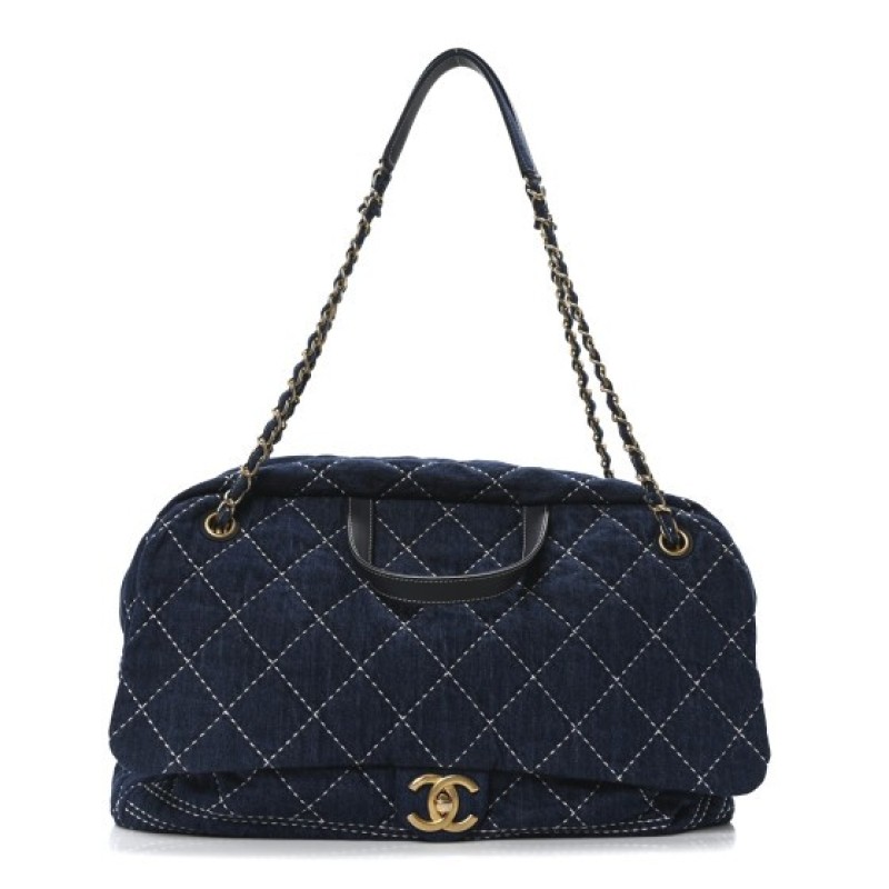 Chanel Denim Quilted Large Express Bowling Bag Blue