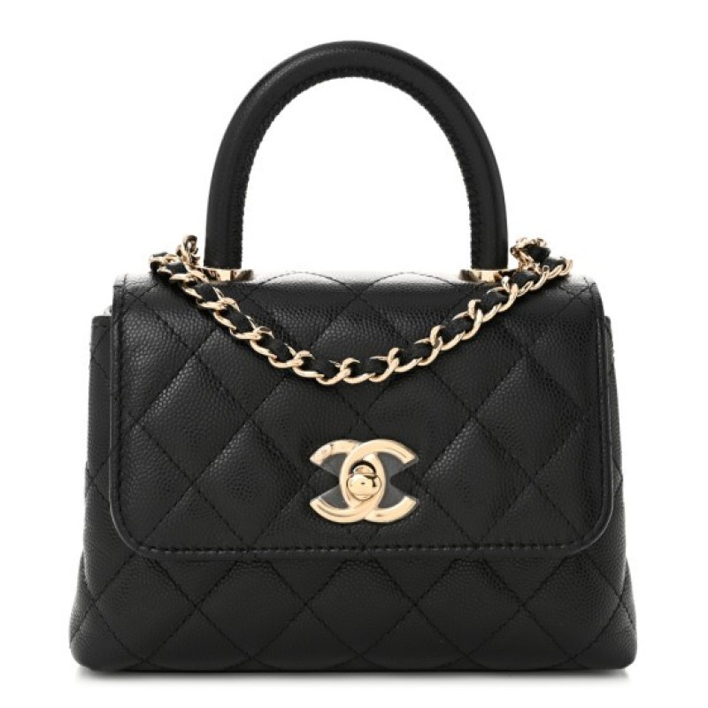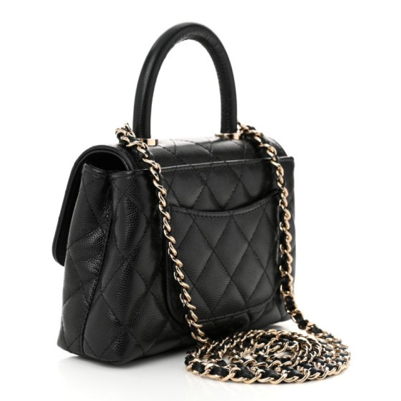 Chanel Caviar Quilted Coco Handle Clutch With Chain Black