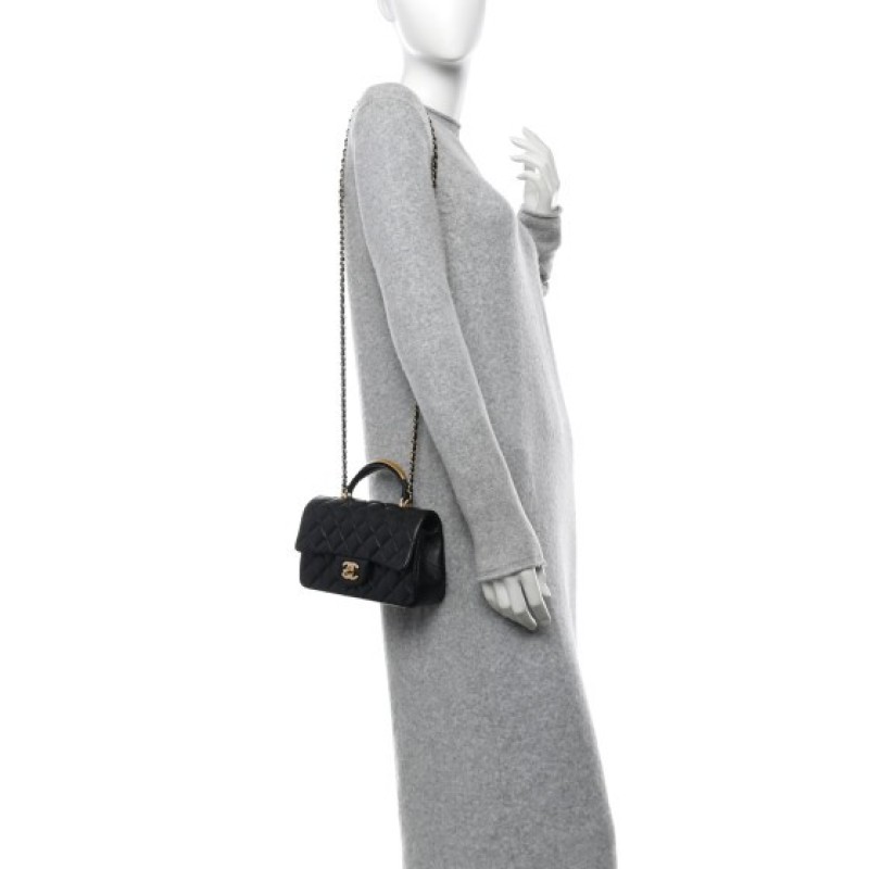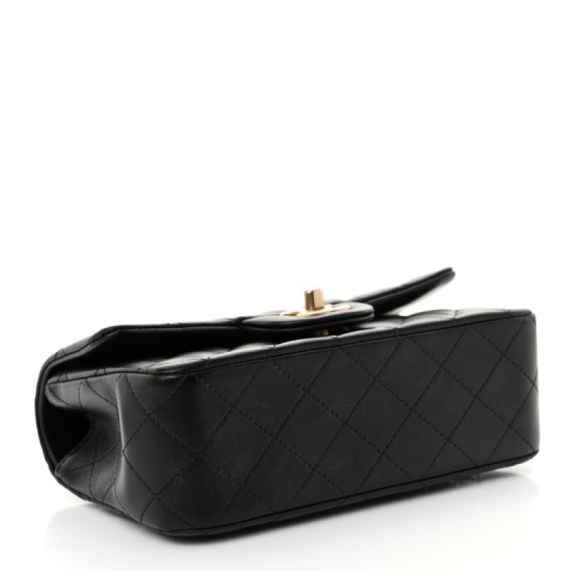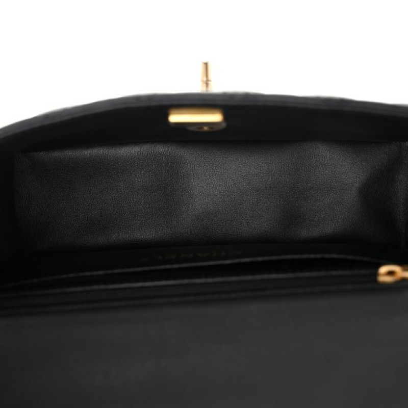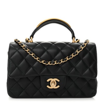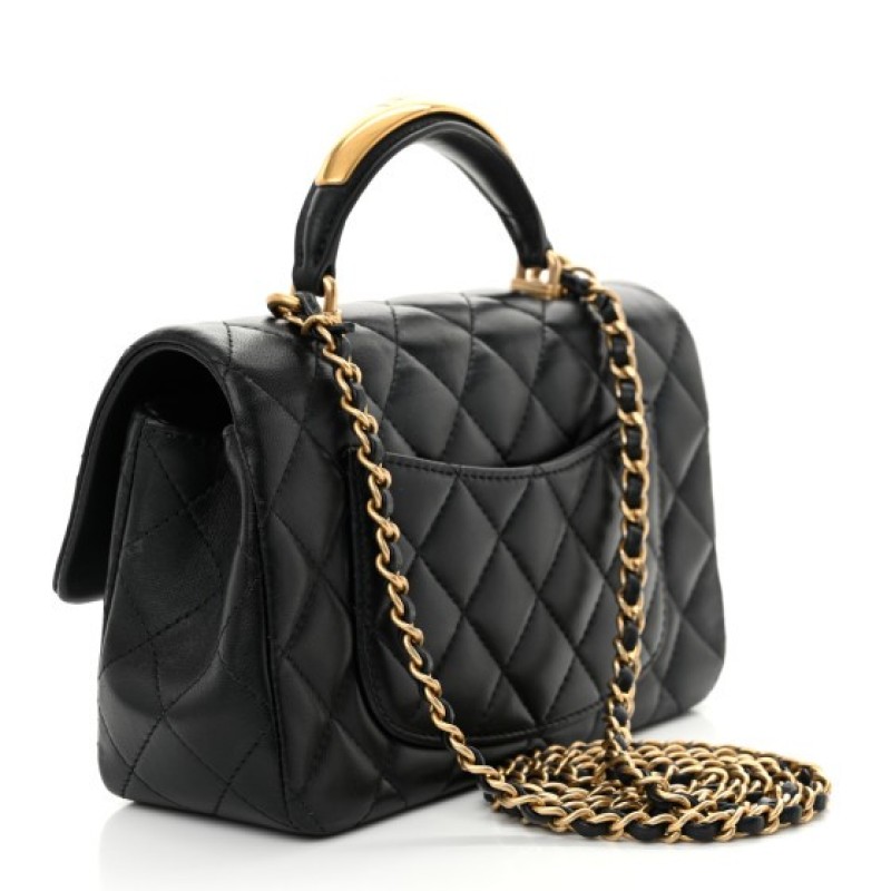 Chanel Lambskin Quilted Metal Mini Top Handle Rectangular Flap Black