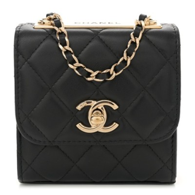 Chanel Lambskin Quilted Mini Trendy CC Chain Wallet Black