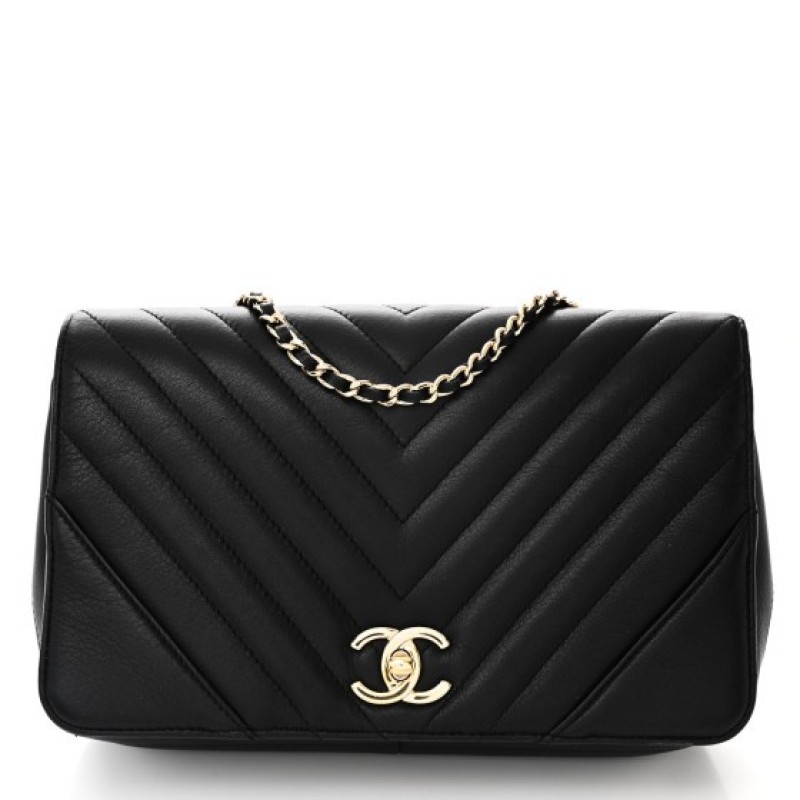 Chanel Calfskin Chevron Quilted Small Statement Flap Black