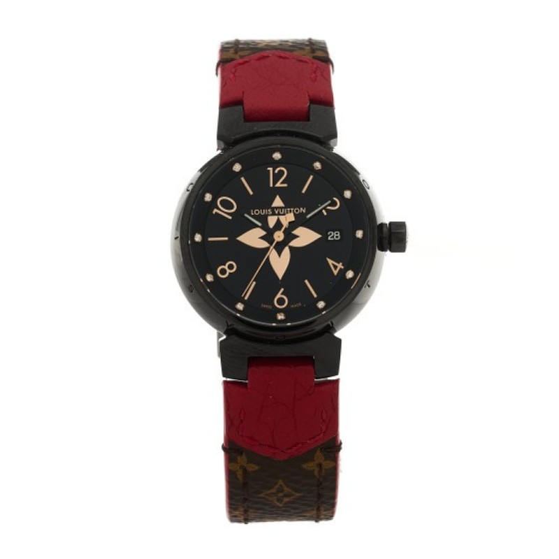 Louis Vuitton PVD Stainless Steel Monogram Diamond 28mm My LV Tambour Quartz Watch Black $1,395 |