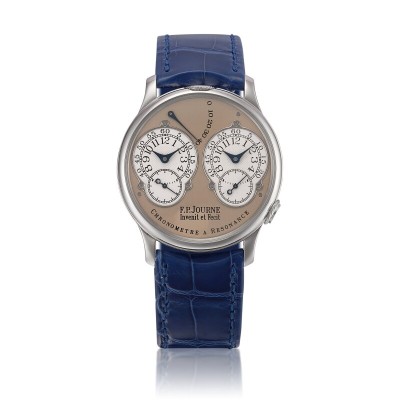 F.P. Journe F.P. Journe Chronomètre à Résonance. A platinum mechanical wristwatch with dual time, power reserve and brass movement. Circa 2002 $573,500 |