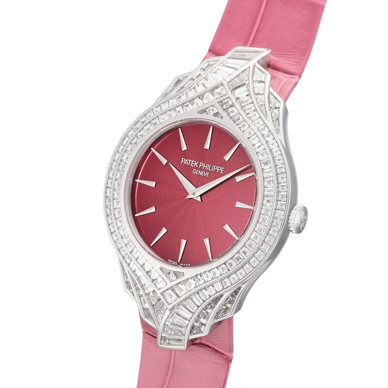 The task of selecting these 162 diamonds falls to the manufacture's skilled gemologist, who meticulously examines hundreds of stones under a magnifying glass, tirelessly comparing, rejecting, rematching, and rearranging them until the ideal combination is found. Only then can the exquisite artistic drape of diamonds be brought to life. As a true testament to Patek Philippe's craftsmanship, the Calatrava Haute Joaillerie combines the brand's signature refinement with the brilliance of precious gemstones, making it a coveted piece.