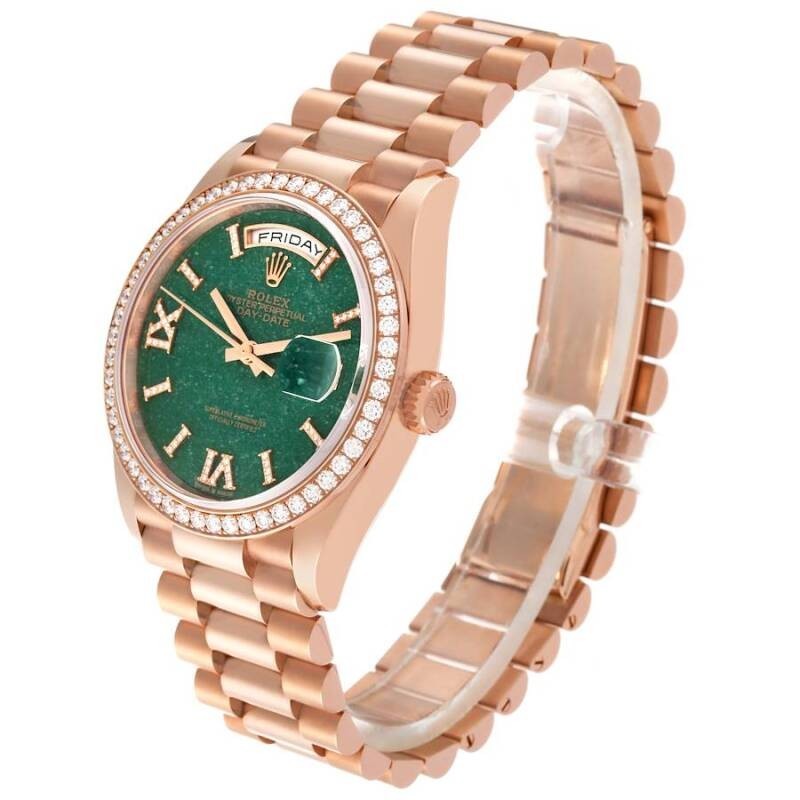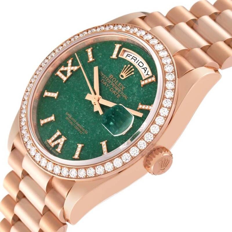 Rolex Rolex President Day-Date Aventurine Dial (Reference 128345RBR). A 36mm unworn rose gold diamond set automatic wristwatch with day and date. 2023 $80,600 |