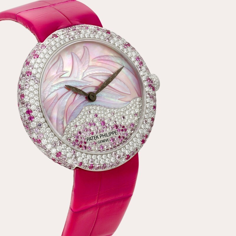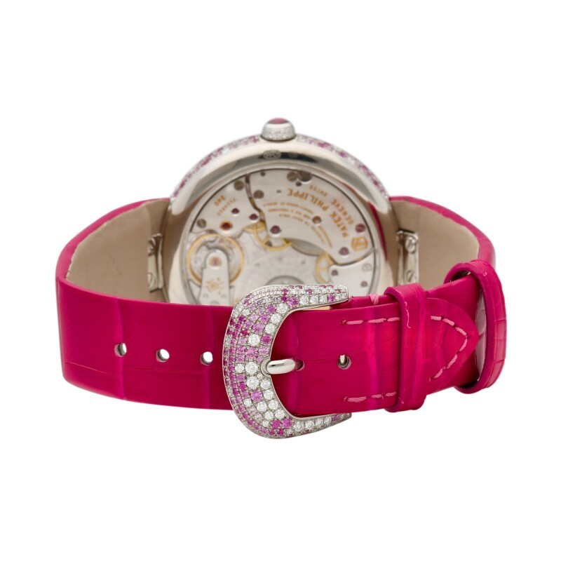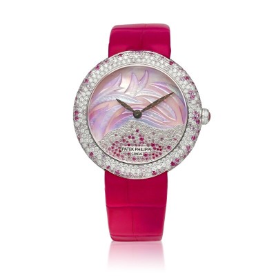 Patek Philippe Patek Philippe Calatrava (Reference 4899/900). A white gold, diamond and pink sapphire-set automatic wristwatch with mother-of-pearl dial. Circa 2017 $80,500 |