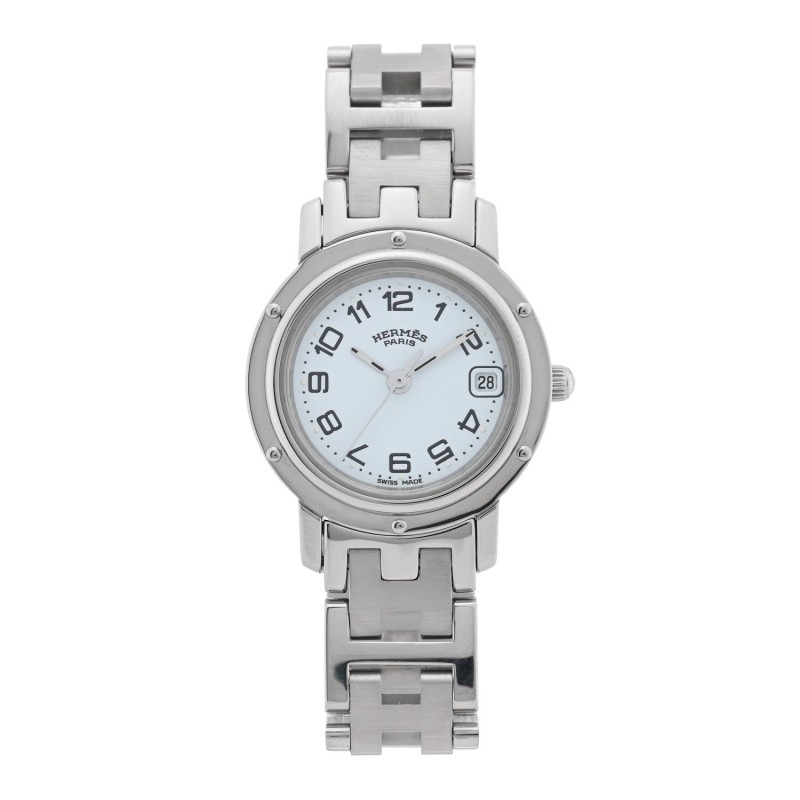 Hermes Stainless Steel 24mm Clipper Quartz Watch White