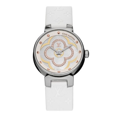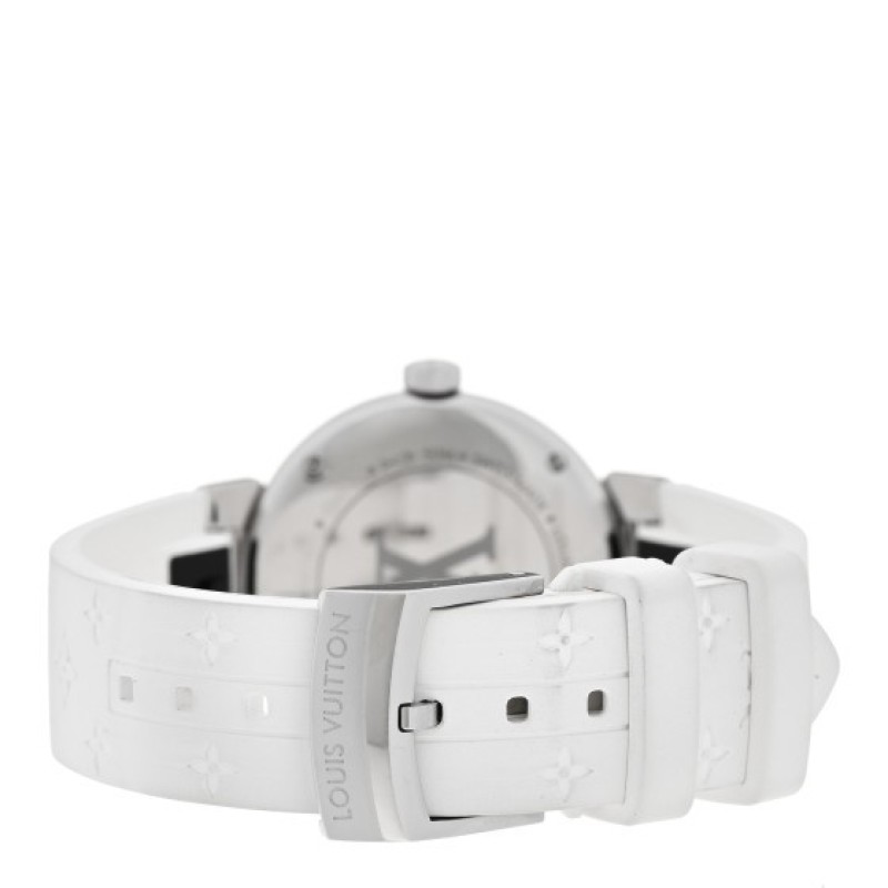 Louis Vuitton Stainless Steel Rubber Diamond 28mm Tambour Moon Divine Quartz Watch White