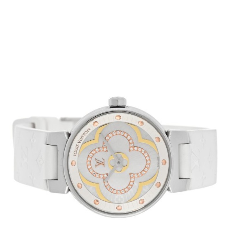 Louis Vuitton Stainless Steel Rubber Diamond 28mm Tambour Moon Divine Quartz Watch White $1,835 |