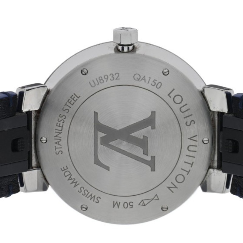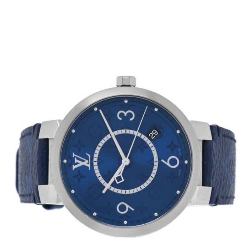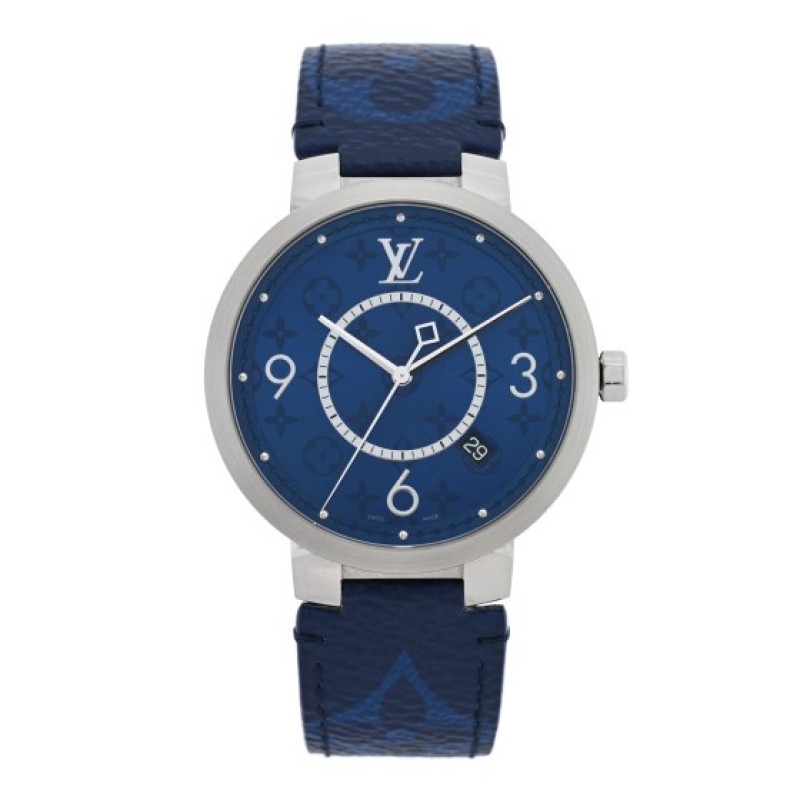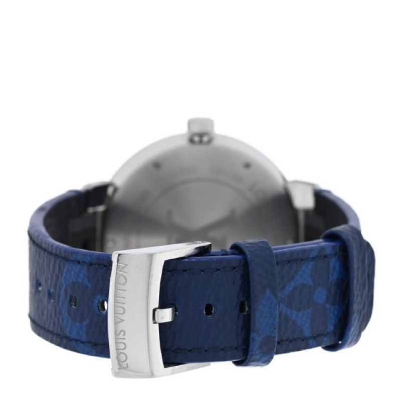 Louis Vuitton Stainless Steel Monogram 38mm Tambour Slim Quartz Watch Blue $1,340 |