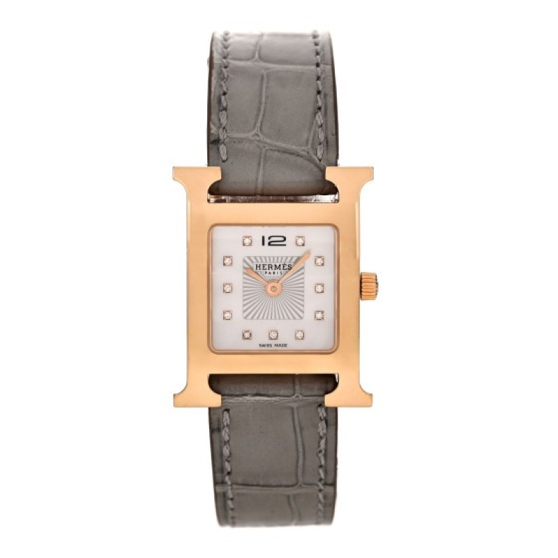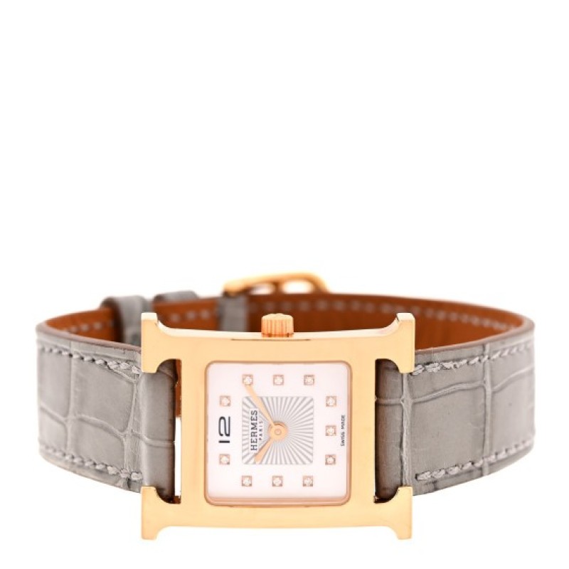 Hermes Stainless Steel Alligator Diamond Mother of Pearl 21mm Heure H Hour Quartz Watch Gris Perle $2,305 |