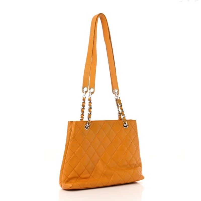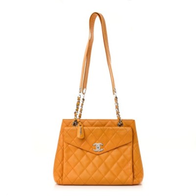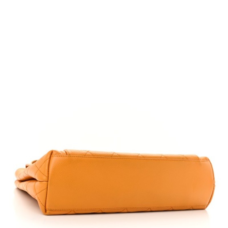 This is an authentic CHANEL Caviar Quilted Pocket Shopping Tote in Orange. This tote crafted of luxurious diamond quilted orange caviar leather with a flap external front pocket. It features gold chain link leather threaded shoulder straps, a gold CC logo. The top is open to a partitioned beige interior with a central zipper compartment.