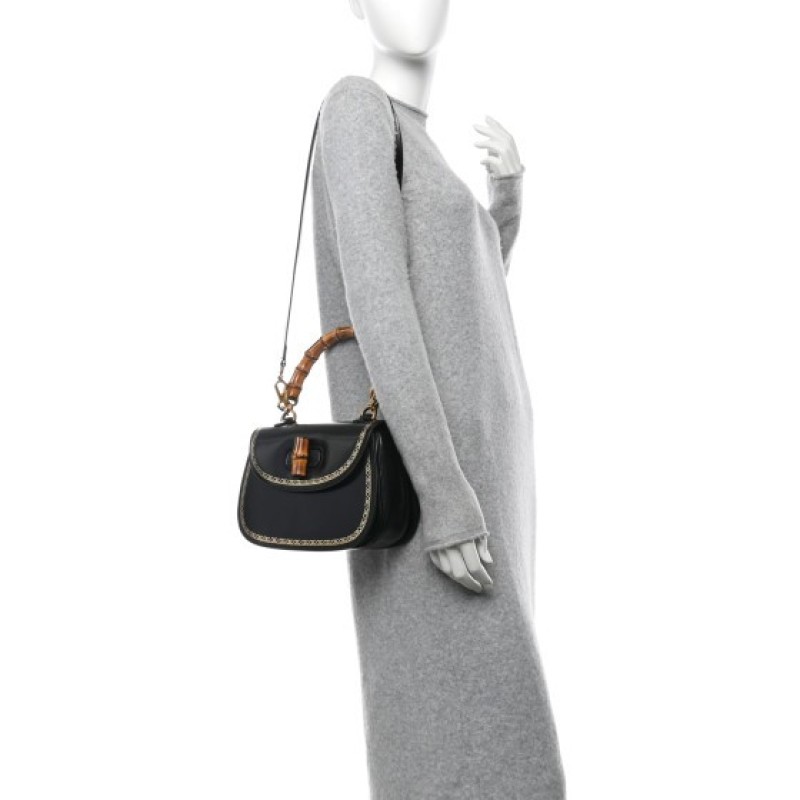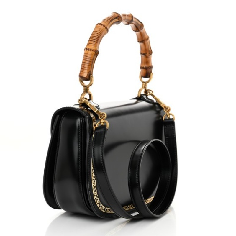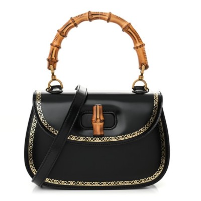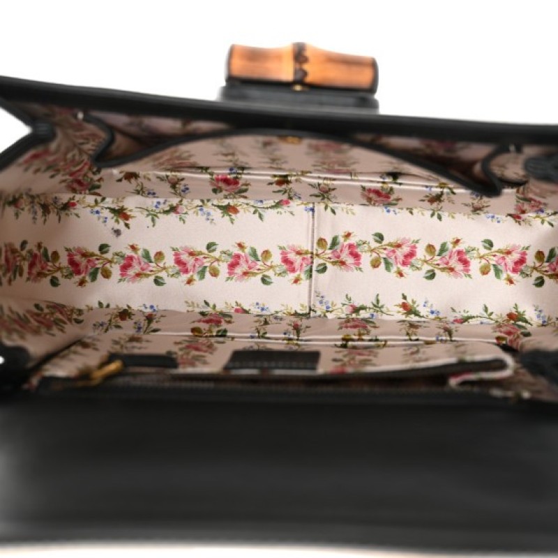 Gucci Calfskin Frame Print Bamboo Top Handle Bag Black