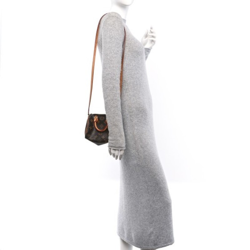 This is an authentic LOUIS VUITTON Monogram Nano Speedy. This stylish, petite tote is crafted of Louis Vuitton monogram coated canvas. The shoulder bag features vachetta cowhide rolled leather top handles, and a vachetta shoulder strap with small polished gold links. The top zipper opens to a cocoa brown fabric interior.