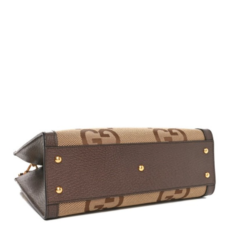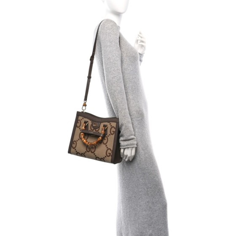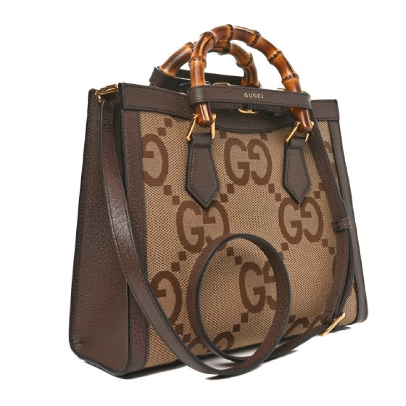 Gucci Monogram Jumbo GG Textured Dollar Calfskin Small Diana Tote Bag Camel Ebony New Acero