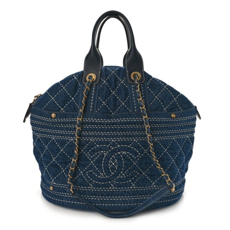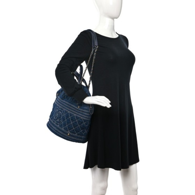 Chanel Denim Quilted CC Denim Trip Shoulder Bag Blue