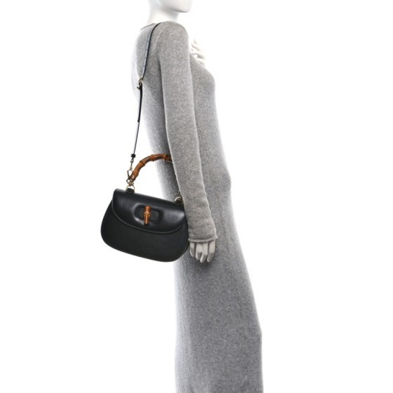 Gucci Boarded Dyana Lux Calfskin Web Medium Bamboo 1947 Top Handle Bag Black
