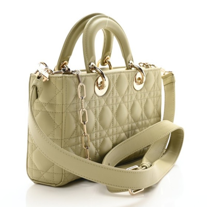 Christian Dior Lambskin Cannage Medium Lady D-Joy Pastel Peyote Green