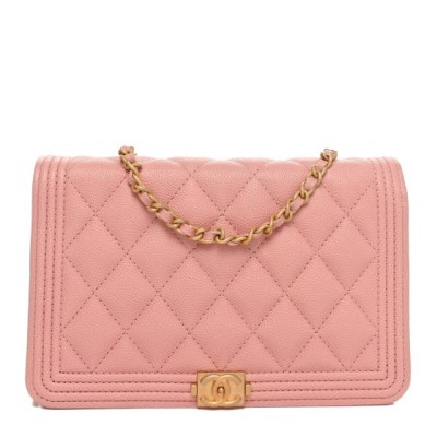 Chanel Caviar Quilted Boy Wallet On Chain WOC Pink