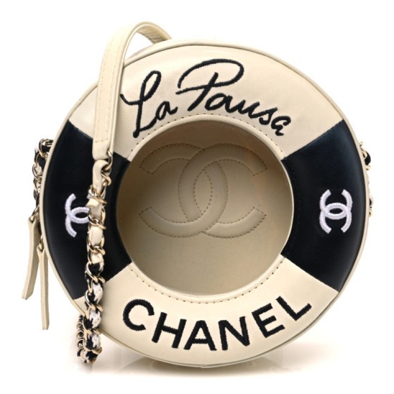 Chanel Lambskin Coco Lifesaver Round Bag Black White