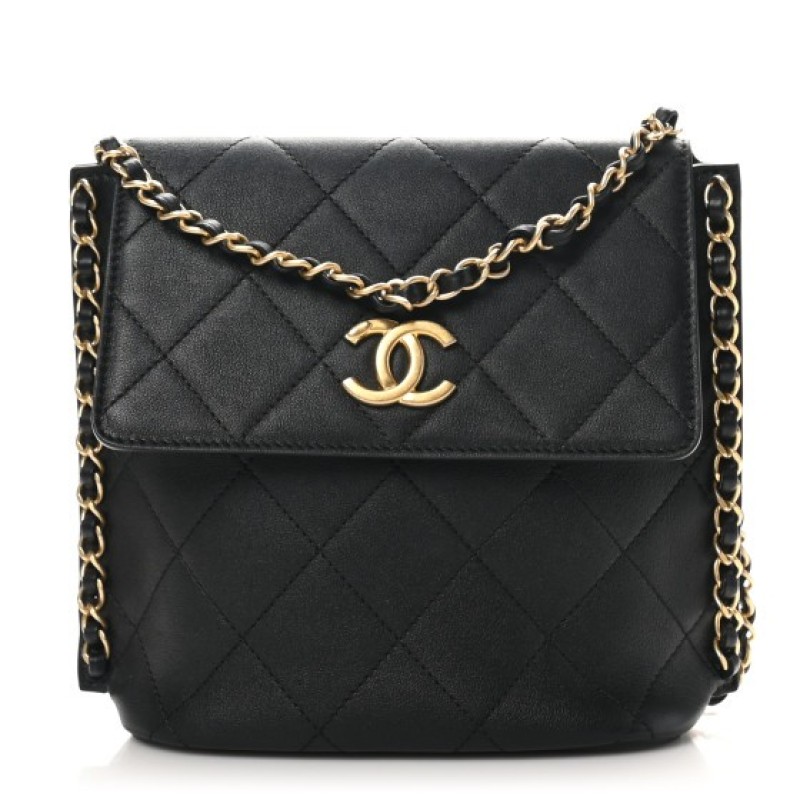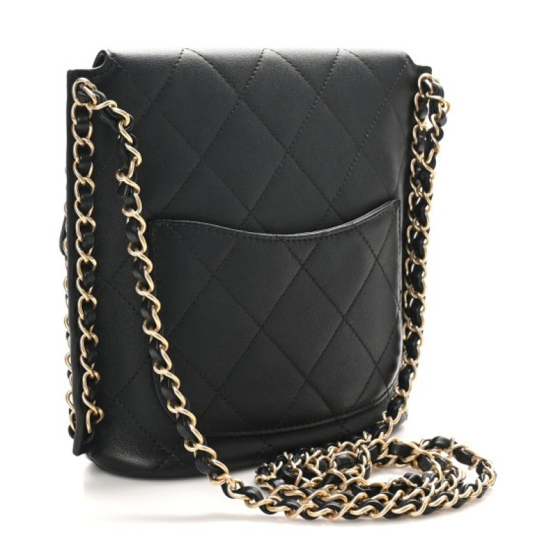 Chanel Calfskin Quilted Chain Small Hobo Bag Black