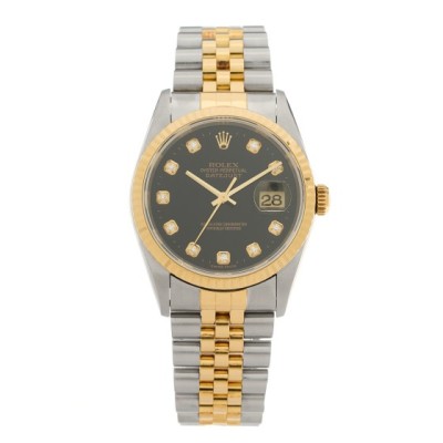 Rolex Stainless Steel 18K Yellow Gold Diamond 36mm Oyster Perpetual Datejust Watch Black 16233 $9,000 |