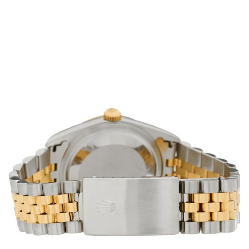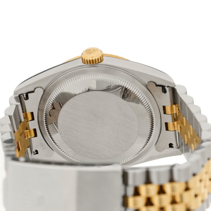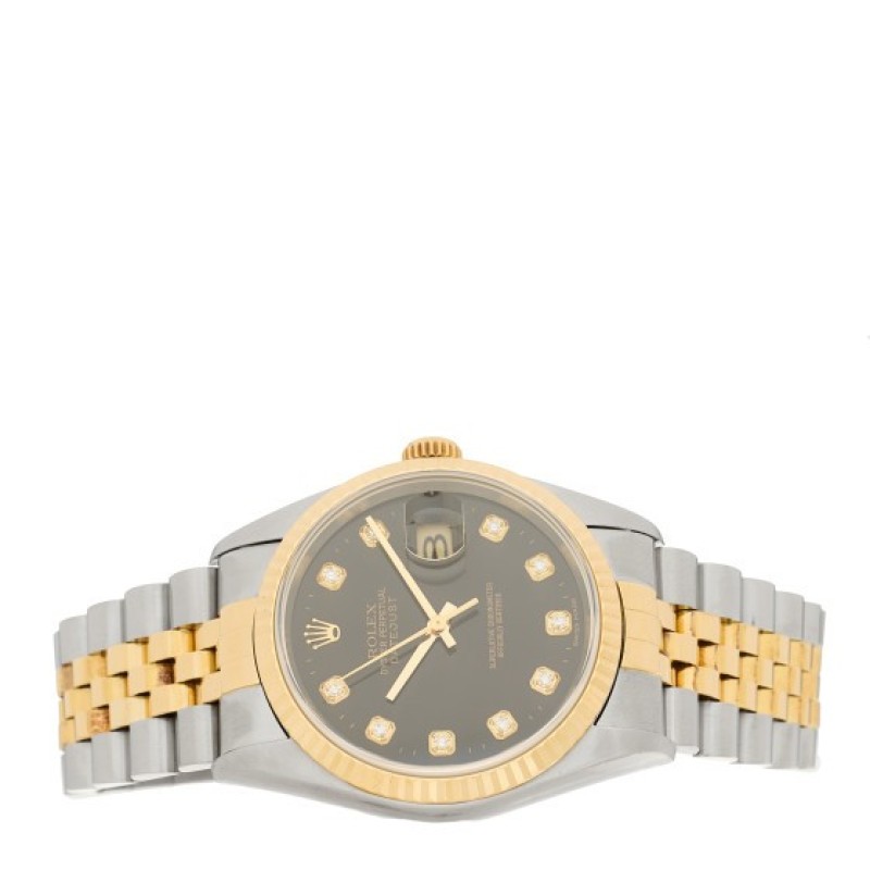 Rolex Stainless Steel 18K Yellow Gold Diamond 36mm Oyster Perpetual Datejust Watch Black 16233