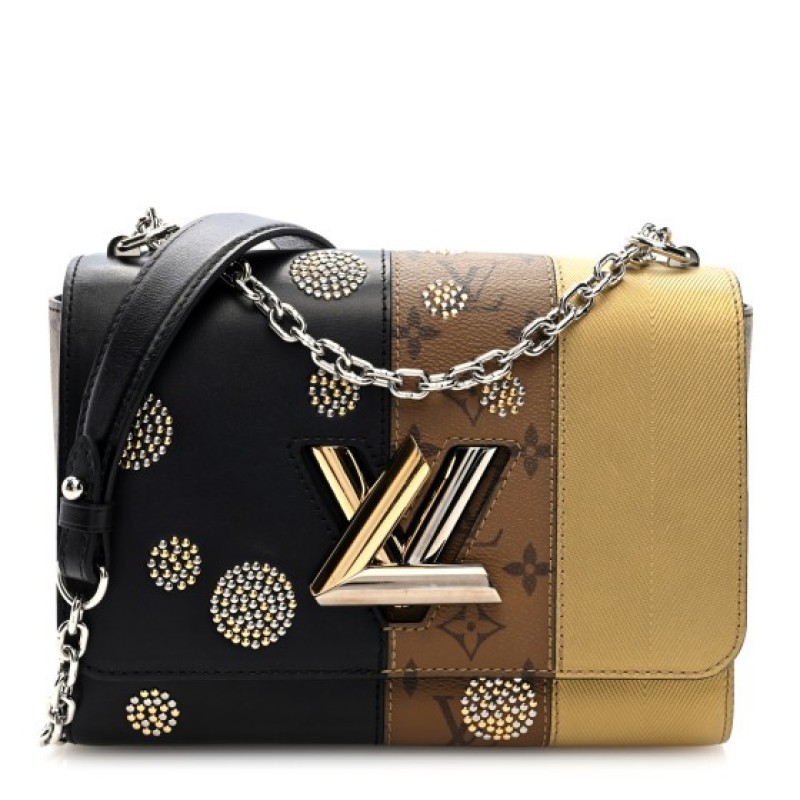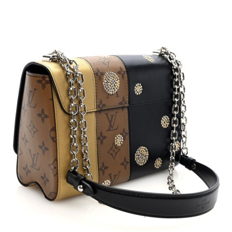 Louis Vuitton Calfskin Reverse Monogram Studded Twist Shoulder Bag MM Black Gold