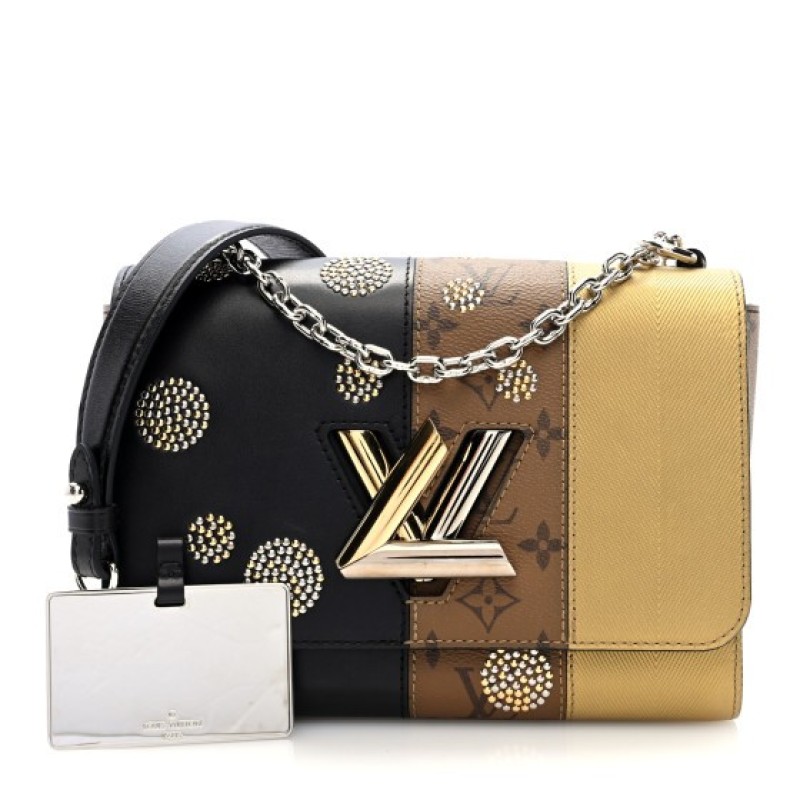 Louis Vuitton Calfskin Reverse Monogram Studded Twist Shoulder Bag MM Black Gold $2,845 |