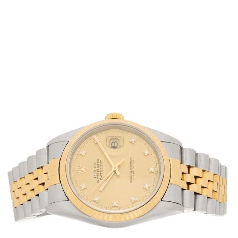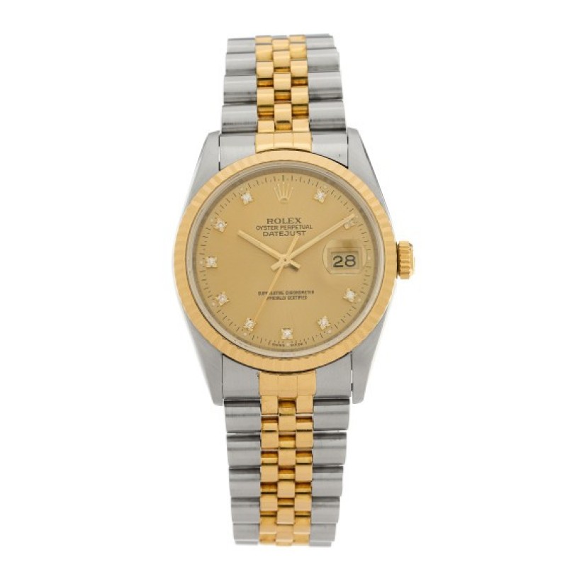 Rolex Stainless Steel 18K Yellow Gold Diamond 36mm Oyster Perpetual Datejust Watch Champagne 16233