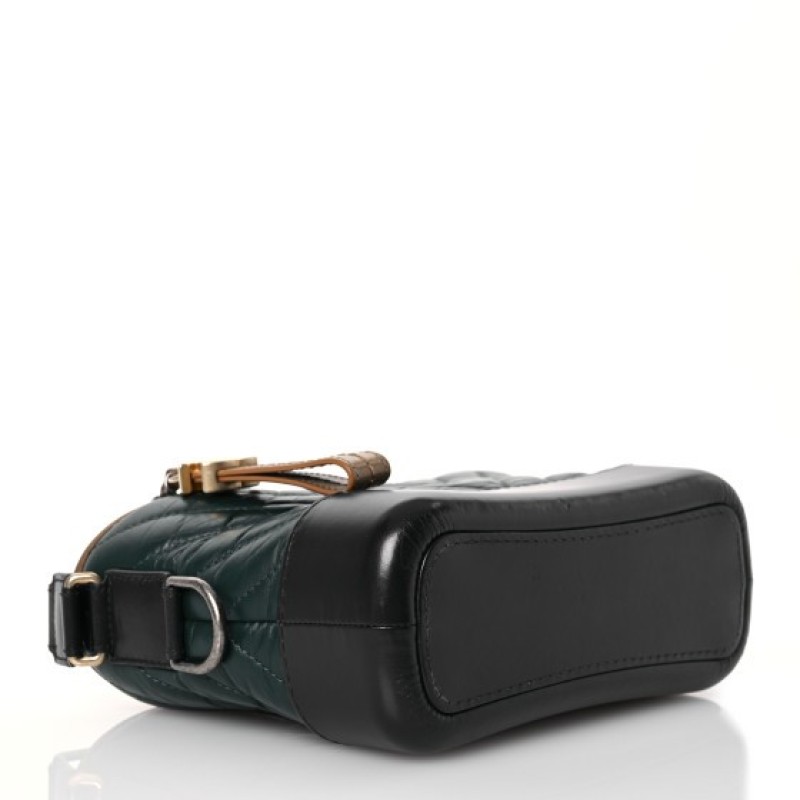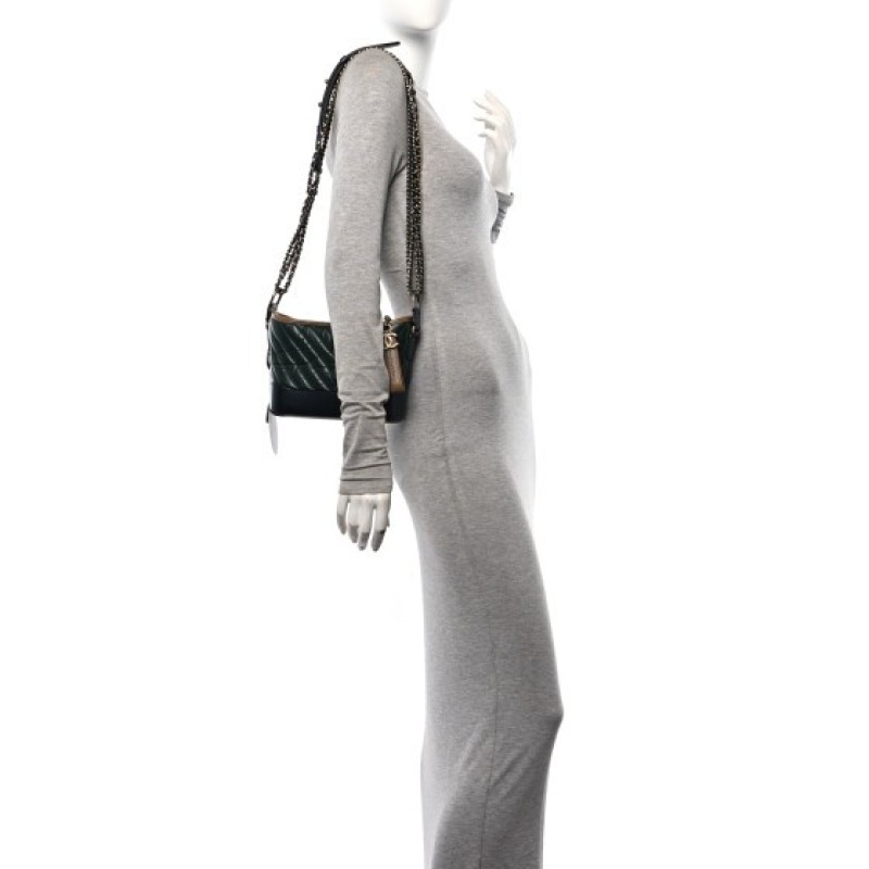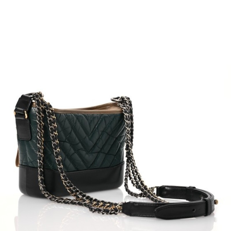 Chanel Aged Calfskin Chevron Quilted Small Gabrielle Hobo Green Navy Blue