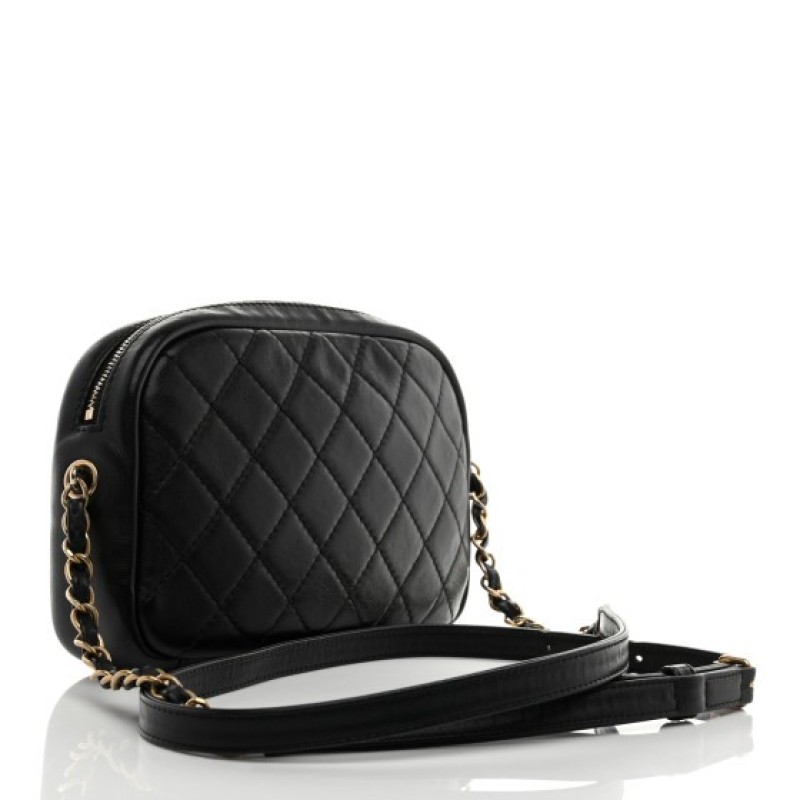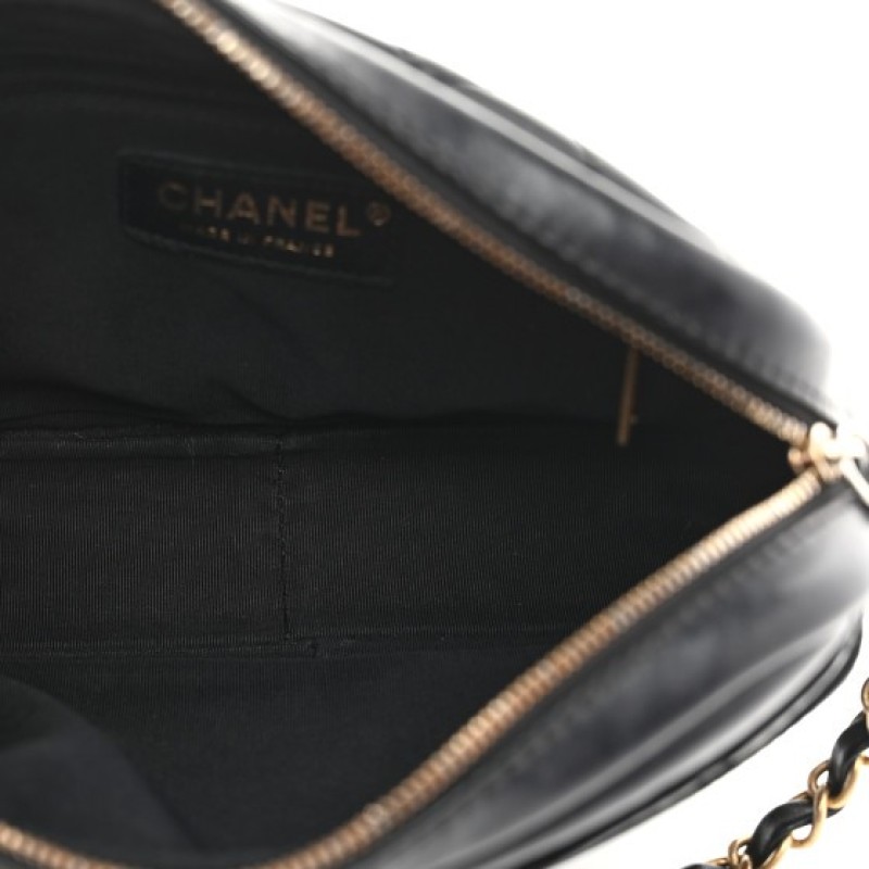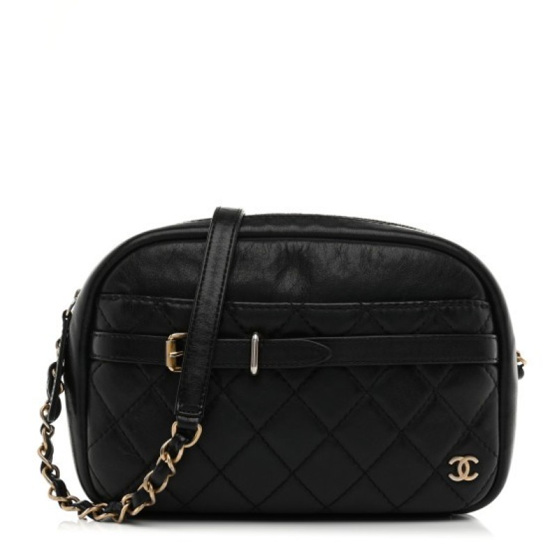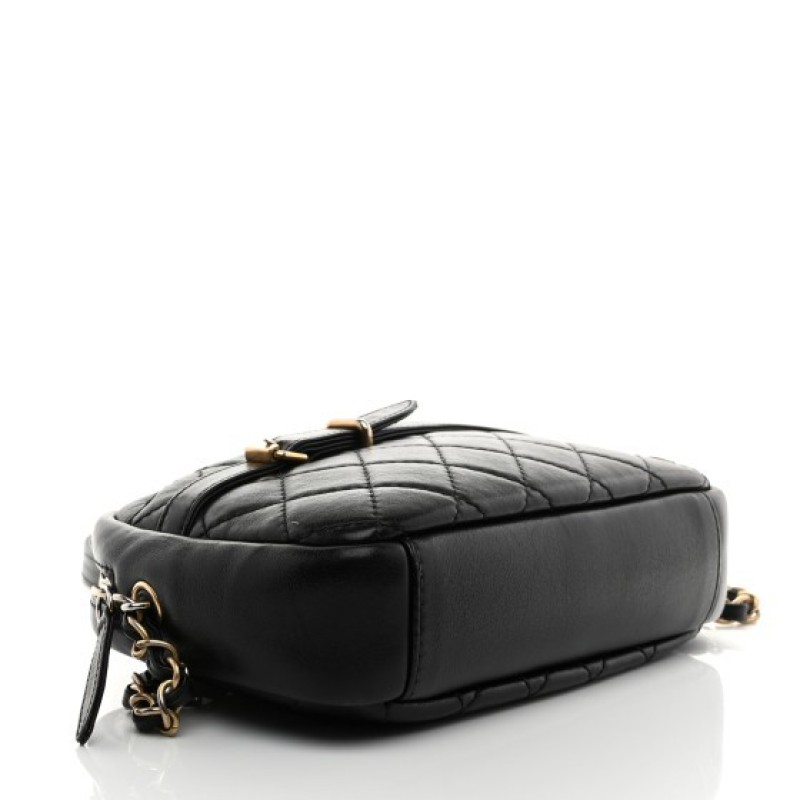 Chanel Lambskin Quilted Medium Buckle Camera Case Bag Black