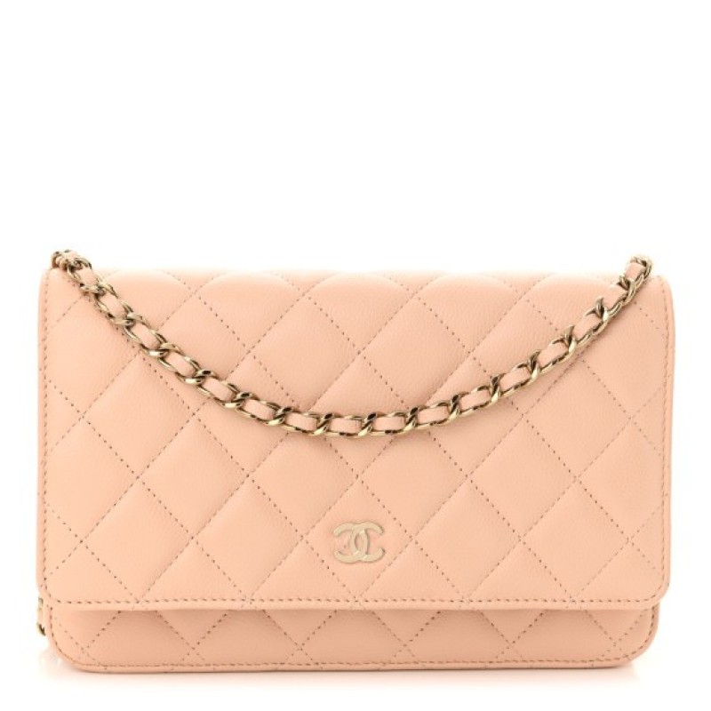Chanel Caviar Quilted Wallet on Chain WOC Light Pink