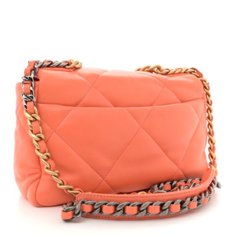 Chanel Lambskin Quilted Medium Chanel 19 Flap Orange