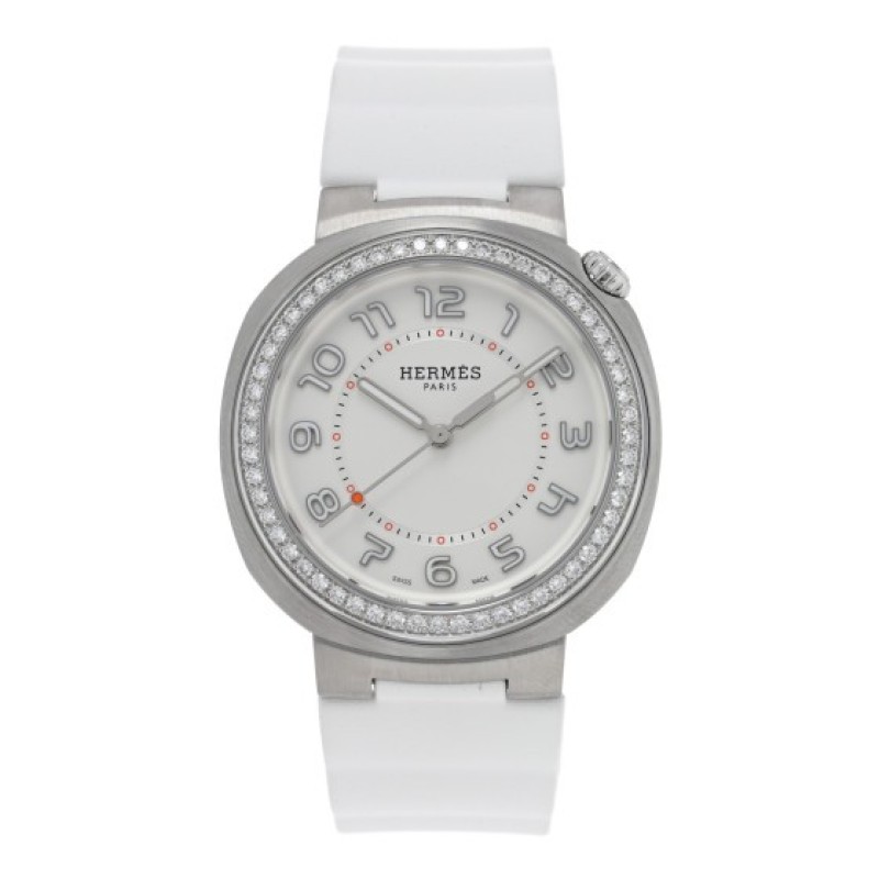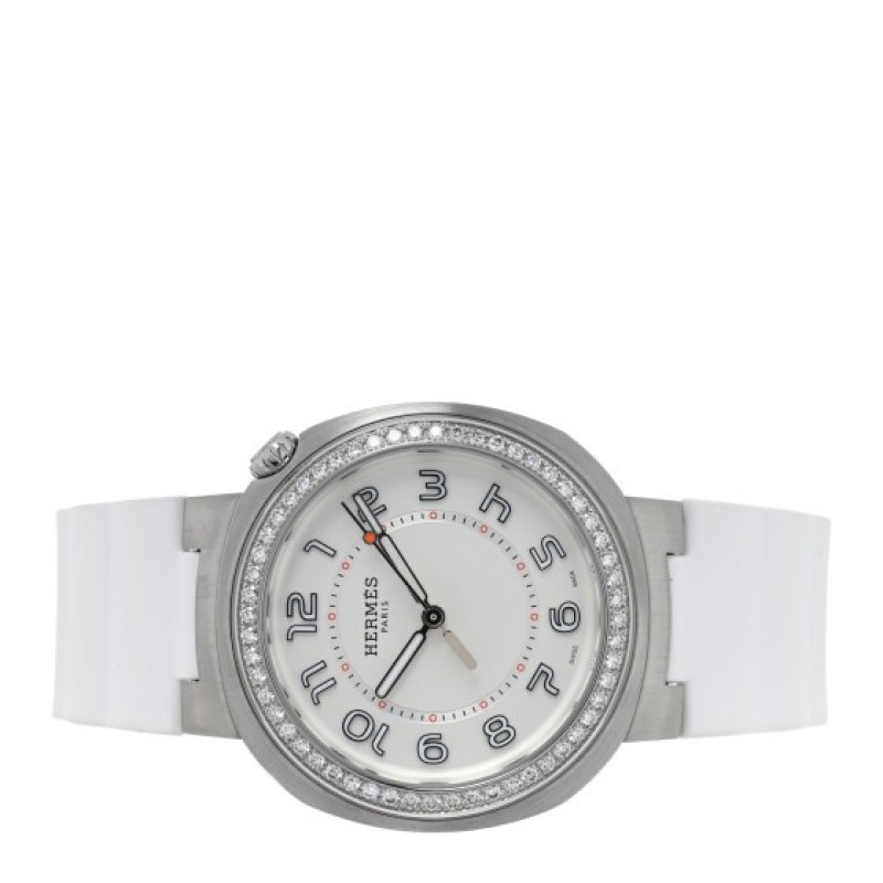 Hermes Stainless Steel Rubber Diamond Bezel 36mm Cut Automatic Watch Blanc $5,790 |