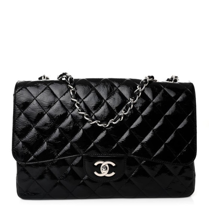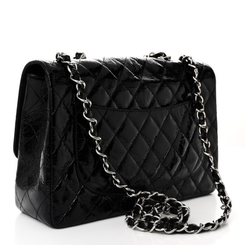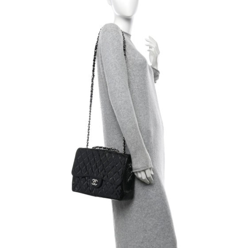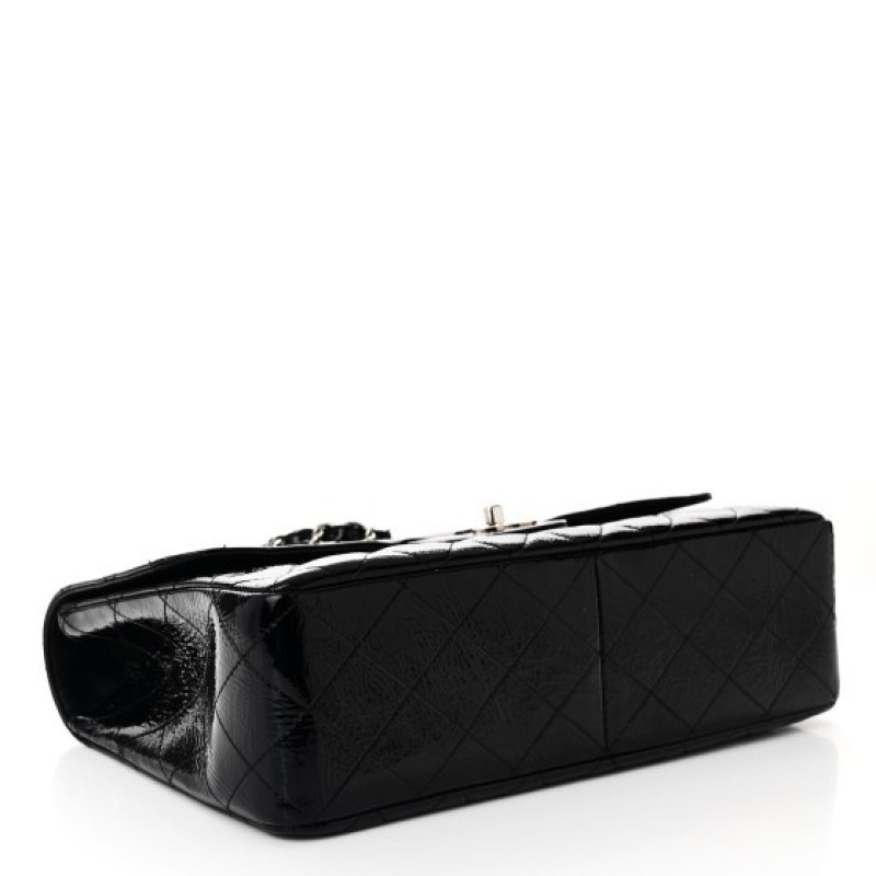 Chanel Distressed Patent Quilted Jumbo Single Flap Black