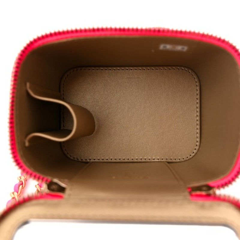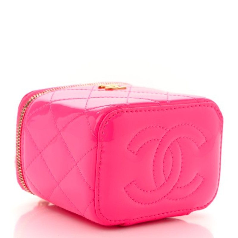 Chanel Patent Quilted Pearl Crush Mini Vanity Case With Chain Neon Pink