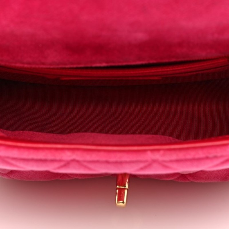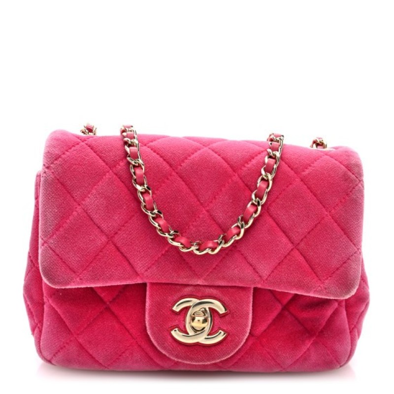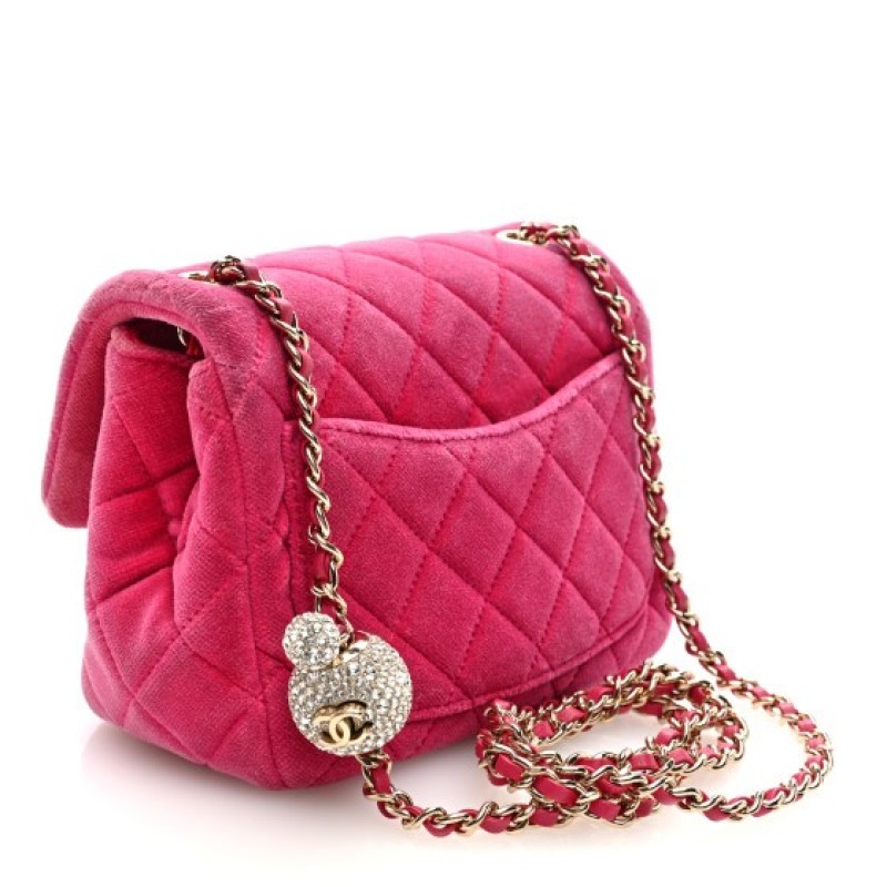 Chanel Velvet Quilted Mini Square Pearl Crush Flap Fuchsia