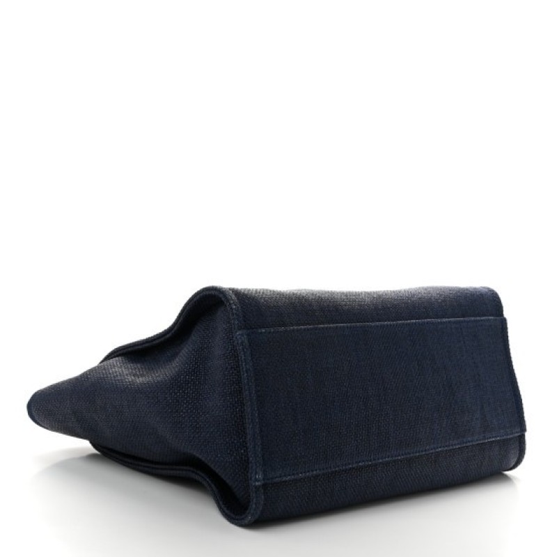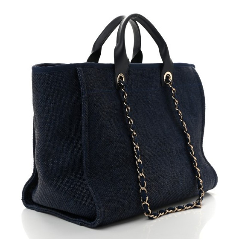 Chanel Woven Straw Raffia Medium Deauville Tote Navy