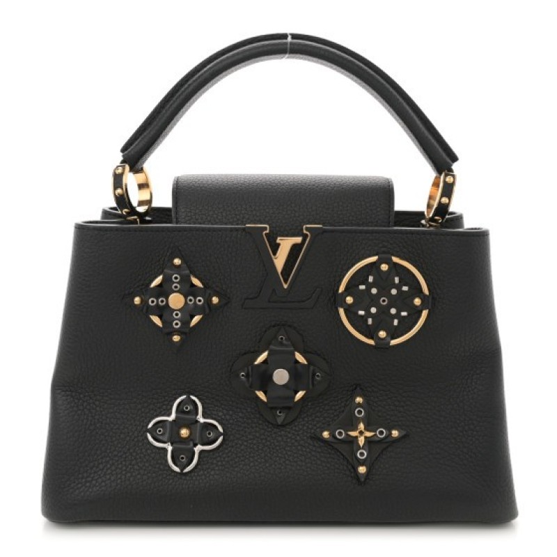 Louis Vuitton Taurillon Metallic Flowers Capucines PM Black