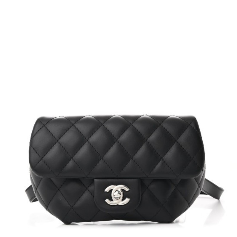 Chanel Calfskin Quilted CC Uniform Flap Belt Bag Black