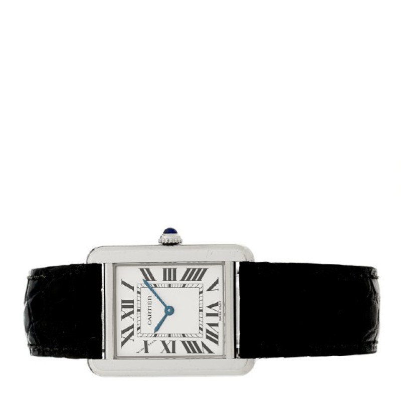 Cartier Stainless Steel Alligator 24mm Tank Solo Quartz Watch