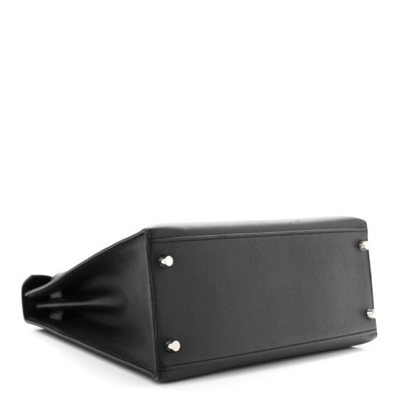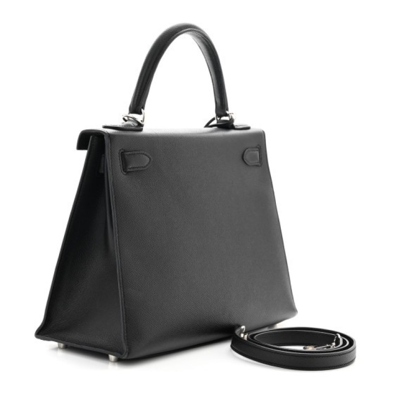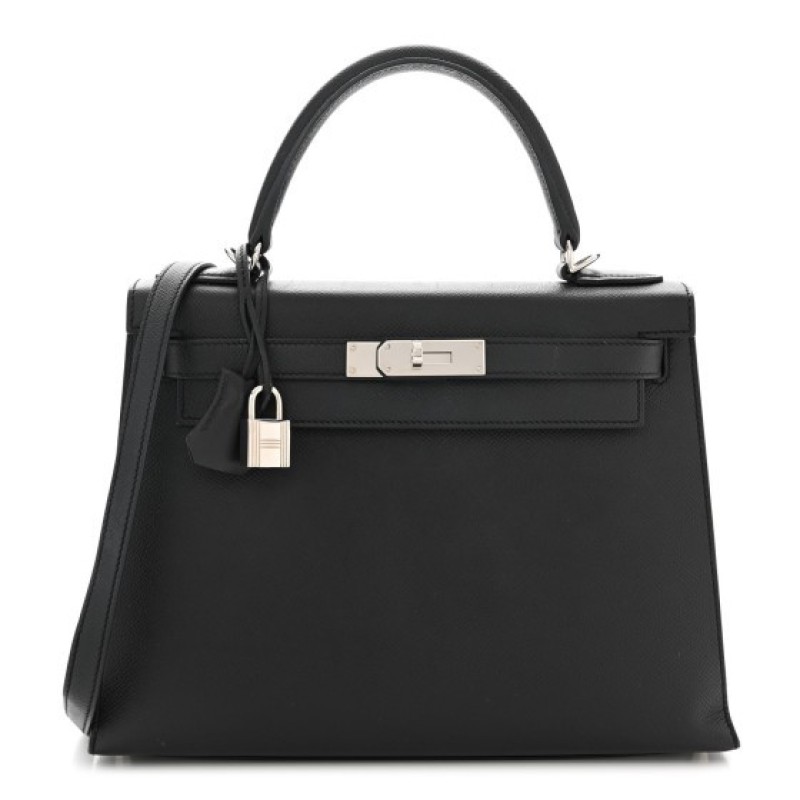 This is an authentic HERMES Epsom Kelly Sellier 28 in Black. This Hermes classic handbag is crafted of stamped Epsom calfskin leather in black. It features a single leather top handle, an optional leather shoulder strap, and palladium plated hardware. The traditional Kelly turn-lock secures the small flap with a padlock and a hanging leather key clochette accessorizes this handbag. The interior features two patch pockets as well as a zipped wide pocket, both in black chèvre goatskin leather.