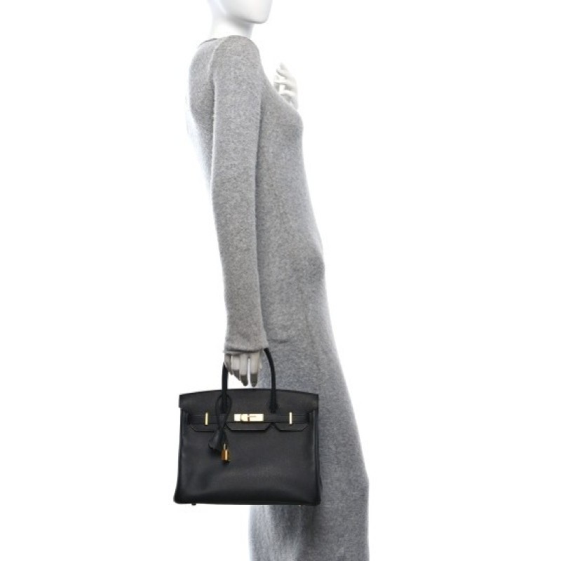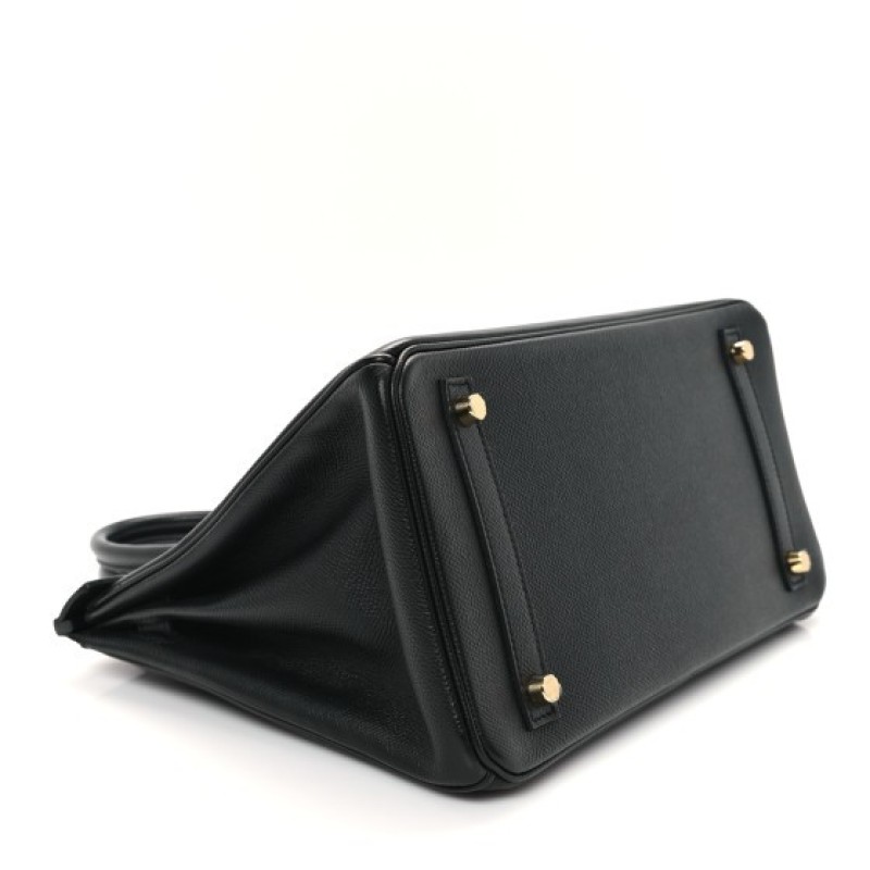 This is an authentic HERMES Epsom Birkin 30 in Black. This stylish tote is beautifully crafted of epsom calfskin leather in black. This bag features rolled leather top handles, a front flap and strap closure and polished gold plated hardware including a gold plated turn lock, a padlock and a clochette for keys. This opens to a matching chevre goatskin leather interior with zipper and patch pockets.